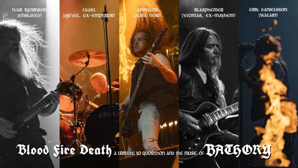 Fundada en 2010, Blood Fire Death ha tenido destacados músicos entre sus filas, siendo actualmente conformada por: Erik Danielsson (Watain) en la voz, Ivar Bjørnson Peersen (Enslaved) y Blasphemer (Vltimas/Ex-Mayhem) en las guitarras, Faust (Djevel/Ex-Emperor) en la batería y Apollyon (Aura Noir) en bajo y voz. Pero también hay músicos invitados: los vocalistas Gaahl (ex-Gorgoroth) y Grutle (Enslaved); y por último, nada menos que Frederick Melander, bajista y miembro fundador de Bathory. Un verdadero lujo.