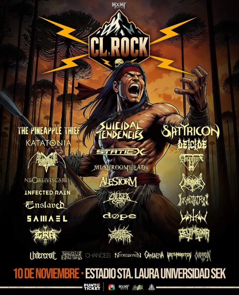 El show de metal más importante de la historia de Chile ya tiene fecha: El próximo domingo 10 de noviembre es la fecha elegida para el CL. ROCK, con casi una treintena de bandas extranjeras y nacionales, que sin duda remecerán el Estadio Santa Laura- Universidad SEK. Son más de 10 horas de música en 4 escenarios. Por lo mismo asegura tu entrada para este megaevento único en su tipo, adquiriendo tu entrada a través del sistema Puntoticket. Acá te dejamos la lista de bandas del festival que marcará un hito en las carteleras del rock y metal dentro de Chile.