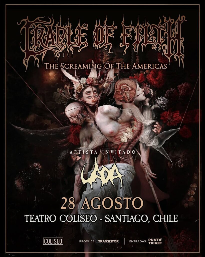 Hay buenas noticias para los seguidores del black metal en Chile. Porque está confirmado el regreso de los británicos Cradle Of Filth, esta vez junto a los oscuros norteamericanos Uada. La primera cita será el 28 de agosto en el Teatro Coliseo de Santiago. Al día siguiente, el 29 de agosto, será el turno de Concepción, en el Havana Club. Te dejamos acá con los afiches de ambos eventos en nuestro país.