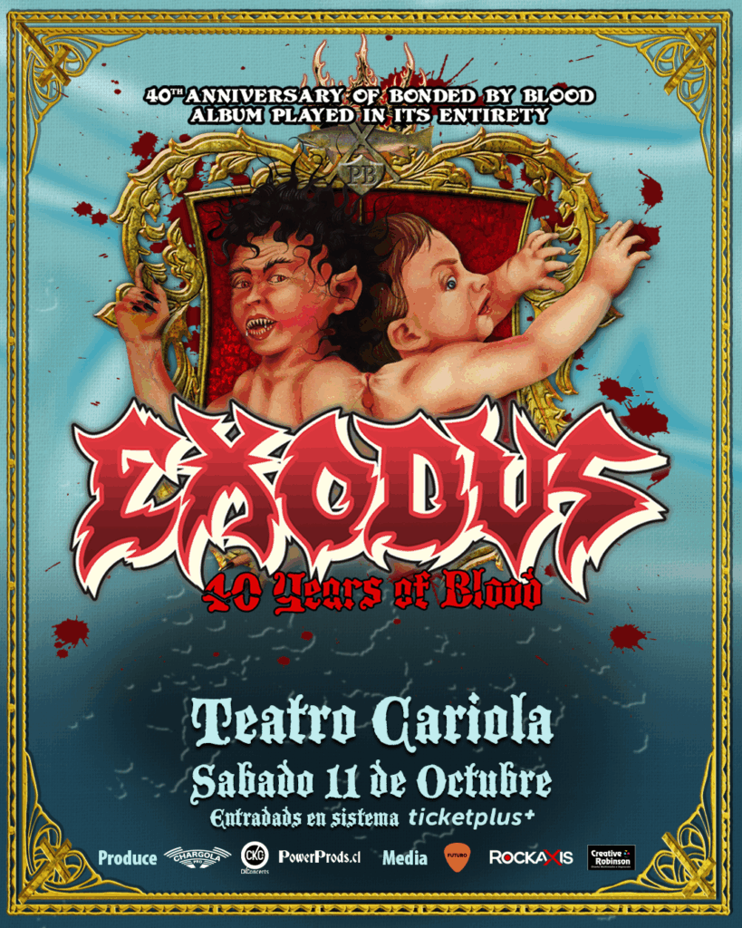 Se confirma uno de los regresos más esperados por los bangers. Hablamos de la banda Exodus, una de las agrupaciones fundamentales del estilo thrash metal, fundada en 1979 en Estados Unidos. Con Rob Dukes nuevamente a cargo de las voces, Exodus volverá a Santiago el próximo sábado 11 de octubre, celebrando los 40 años de su icónico disco debut “Bonded by Blood” en el Teatro Cariola.