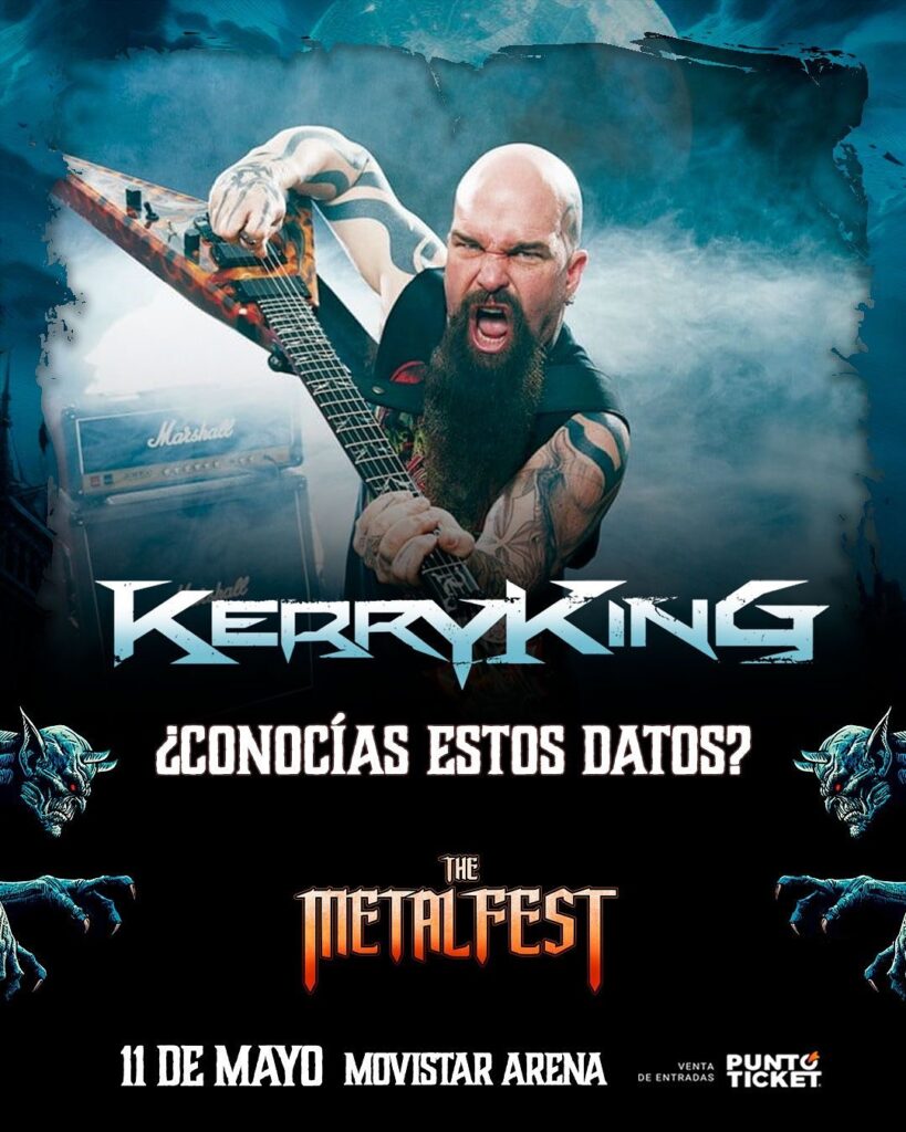 KERRY KING: Un personaje que no necesita presentación. Emblemático guitarrista de la banda Slayer, esta figura norteamericana llega ahora por primera vez a Chile en su faceta solista, junto a una banda de lujo. Por supuesto que dentro del setlist vienen algunos de sus éxitos en Slayer.