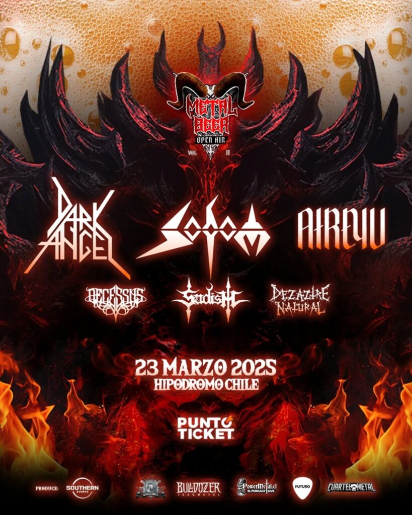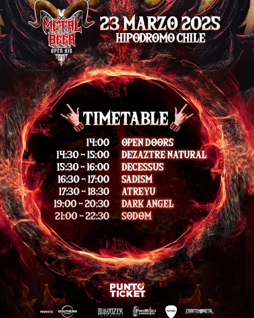 Por fin se acerca el evento que tanto estábamos esperando. Metal Beer Open Air llega el domingo 23 de marzo al Hipódromo Chile, para consolidarse como el gran festival de la música extrema en este primer semestre en nuestro país. Todo precedido del éxito de la versión del año pasado, en ese mismo lugar, que tuvo como cabeza de cartel a la banda norteamericana Death To All. Y para esta versión 2025 lo que se nos ofrece está de lujo. Mira acá el afiche oficial.