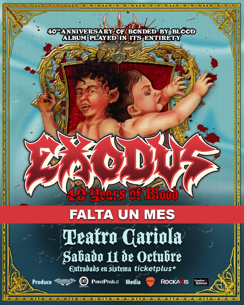 Se acerca la fecha que ya tenemos marcada en el calendario. Porque el sábado 11 de octubre será muy especial para los metaleros en Chile, con el regreso a Santiago de la legendaria banda norteamericana Exodus. Esta vez con un motivo muy potente, como lo son las cuatro décadas del disco que marcó sus carreras, «Bonded By Blood». El álbum será interpretado en vivo en su totalidad, para deleite de todos los thrashers chilenos.