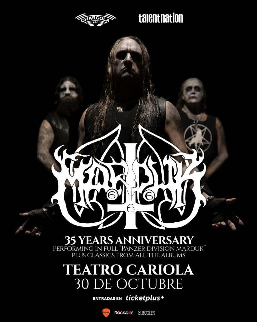 Las blasfemias de Marduk retumbarán nuevamente en Chile el próximo 30 de octubre, cuando los suecos lleguen a tocar íntegramente su famoso disco Panzer Division Marduk, en el Teatro Cariola. Y no sólo eso, ya que el setlist hará un recorrido por los mejores momentos de su exitosa carrera, que arrancó en 1990 por tierras nórdicas. No te quedes fuera de esta devastadora jornada de black metal. Asegura tu entrada a través del sistema Ticketplus. Invita Chargola Pro y Talent Nation.
