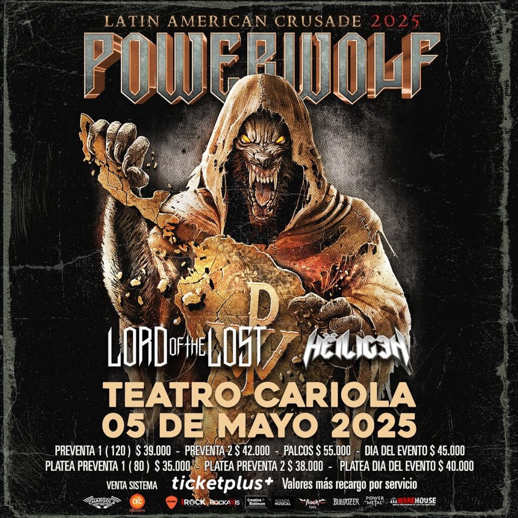 Una de las bandas más destacadas del metal alemán, Powerwolf, confirmó su segunda visita a Chile para el 5 de mayo, junto a los también germanos Lord Of The Lost y los chilenos Hëiligen. La cita será en el mítico Teatro Cariola de Santiago y las entradas se venden por sistema Ticketplus.