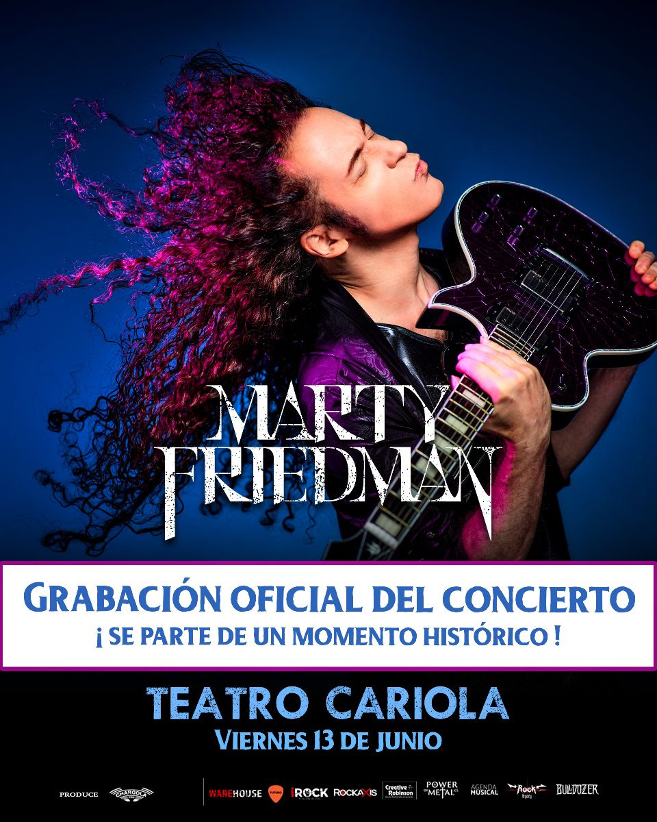 El virtuoso guitarrista norteamericano, Marty Friedman, ofrecerá dos imperdibles shows en el marco de su gira sudamericana, con fechas confirmadas en Valparaíso (12 de junio en Club Segundo Piso) y Santiago (13 de junio en Teatro Cariola). La presentación en Santiago marcará un momento clave en la carrera del artista, ya que será grabada oficialmente para formar parte del material audiovisual de la gira, un hito que posiciona al público chileno como protagonista de esta etapa del tour.