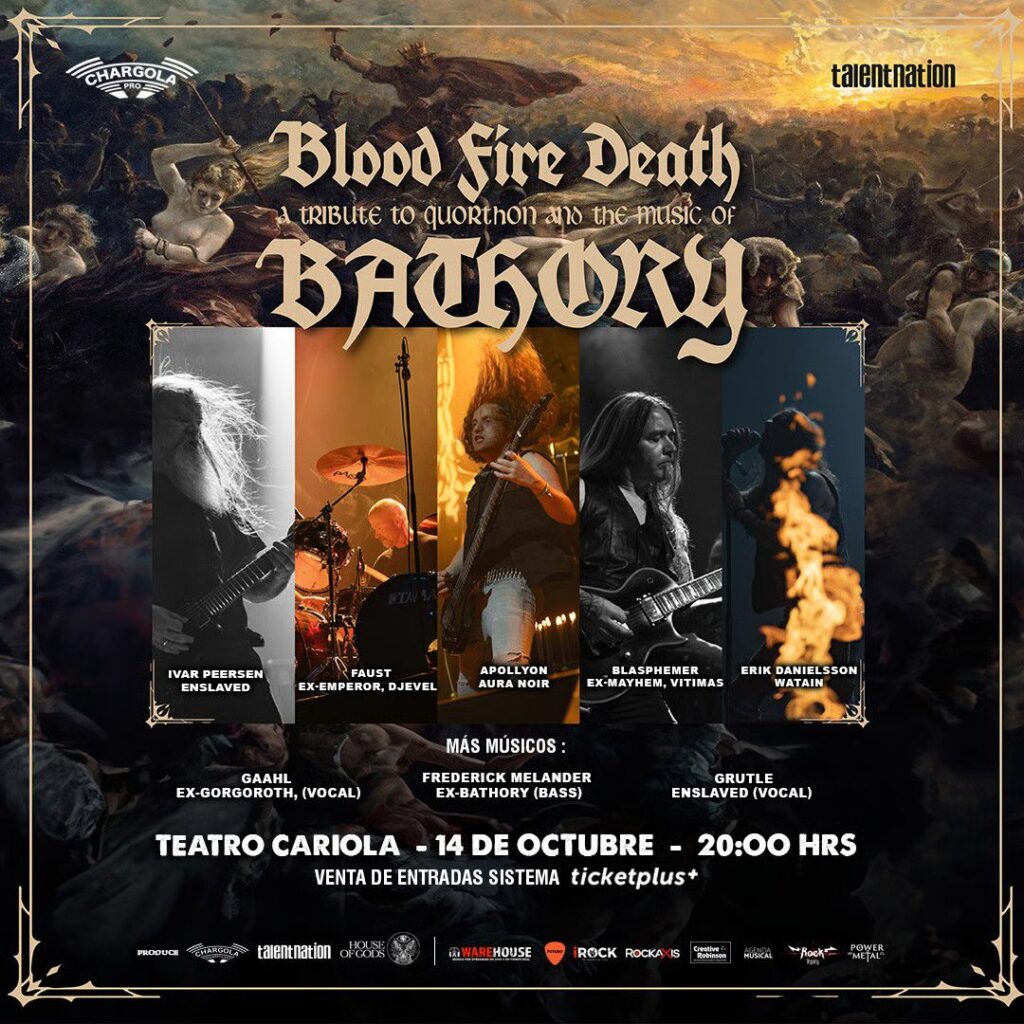 El fallecido músico Thomas Börje Forsberg (Quorthon), líder de la banda sueca Bathory (que nunca tocó en vivo), es considerado uno de los artistas más importantes de la música extrema, pionero del black y viking metal. En homenaje a su memoria, el año pasado se formó la súper banda llamada Blood Fire Death, para interpretar por primera vez en vivo las piezas compuestas por el legendario Quorthon. En el proyecto participan: