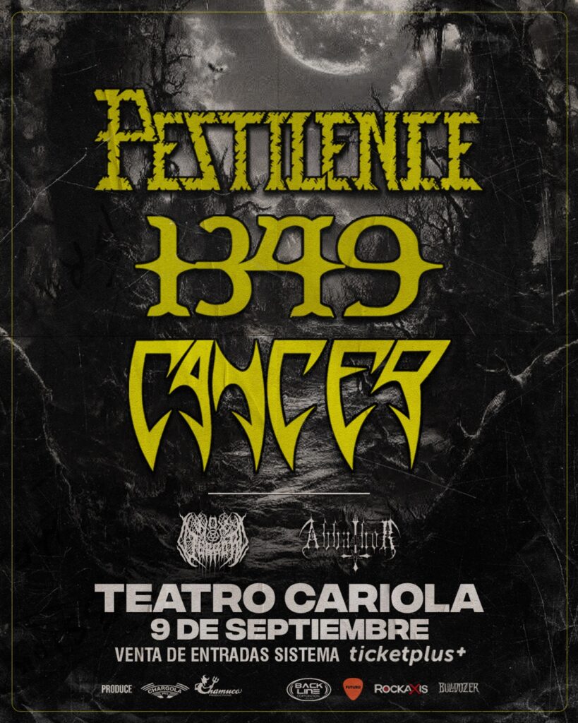 La fecha del 9 de septiembre quedará en la memoria de todo seguidor del metal, luego de confirmarse una jornada brutal en Santiago de Chile, todo en una sola noche. Se trata de un show con las respetadas bandas internacionales Pestilence, 1349 y Cancer. A ellos se agregan las agrupaciones nacionales Nox Terror y Abbathor. Si quieres ser partícipe de esta demoledora jornada adquiere ahora mismo tu entrada vía Ticketplus. Produce: Chargola Pro – Chamuco Producciones.